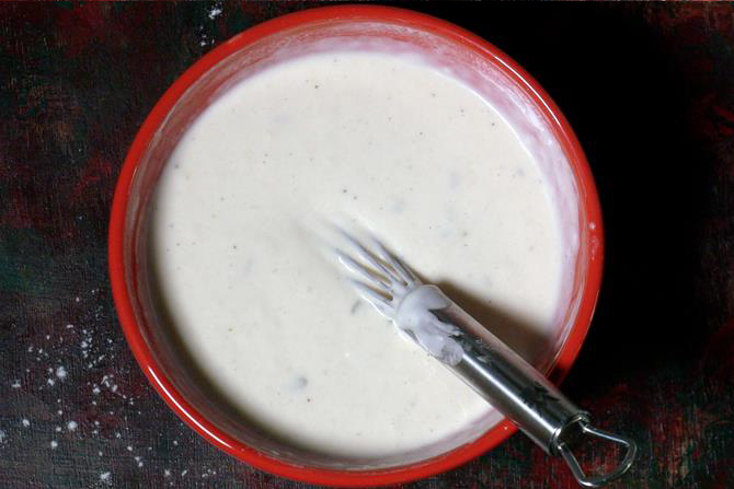 Mix well making sure no lumps remain in it. Cover and set aside for 3-4 hours (batter should be of dosa batter consistency; add more water if needed).
