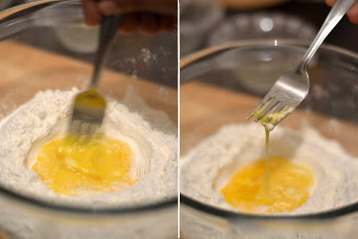 - Mix together flour and salt, and add ghee. Rub the ghee with flour in between your palms to form a breadcrumb like mixture.