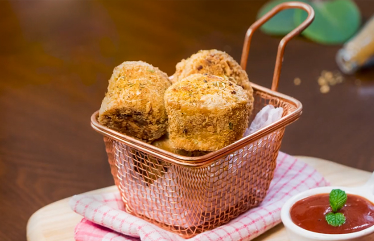 Flatten them, dip them in the cornflour paste and coat them with panko breadcrumbs.