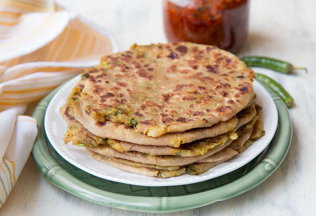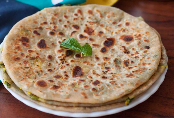 Knead a soft dough for the parathas with wheat flour and water. Make small, even and round balls and along with it make a depression in the centre and add a spoonful of potato filling.