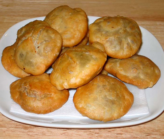 Divide the prepared dough into equal parts and roll one of them to a round bigger than a poori. Add the dal mix over the rolled dough and cover it carefully from all sides to form a rounded ball. This ball must be very tightly covered so oil must not seep inside while deep frying.